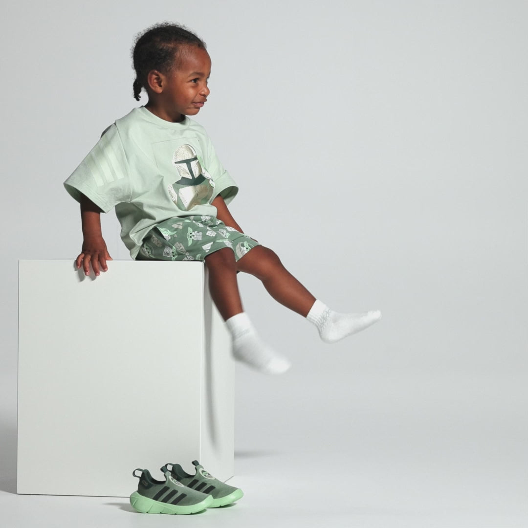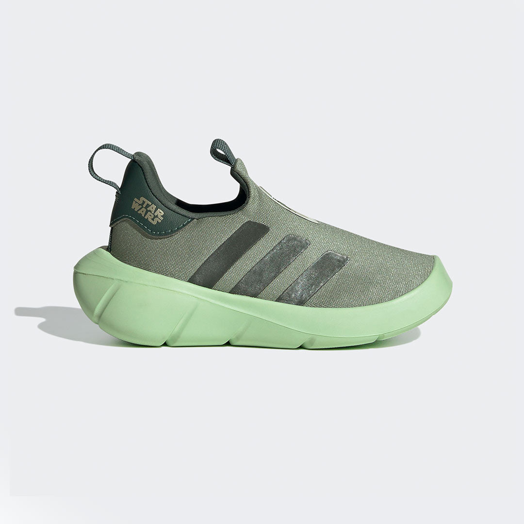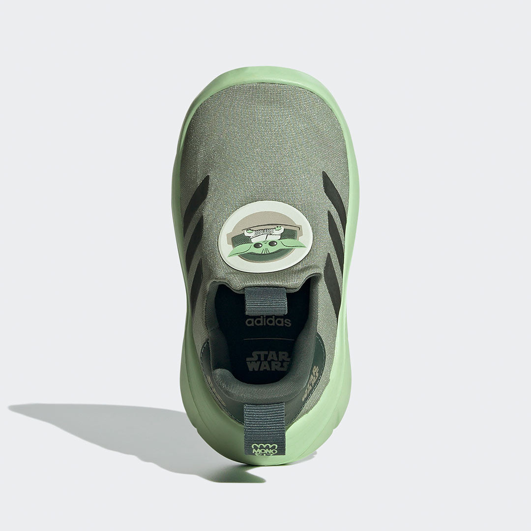 La Fuerza estará de su lado con estos tenis adidas Monofit para bebé. Presentan un diseño con un estampado de Grogu en el exterior y el logo de Star Wars en el costado ideal para los caballeros Jedi que están dando sus primeros pasos. No importa si tu pequeño está aprendiendo a caminar o simplemente explorando la galaxia, estos tenis le siguen el ritmo en todas sus aventuras. Su diseño cómodo de calce fácil y la suela de EVA ligera y flexible los convierten en el par perfecto para los pequeños pies en movimiento.