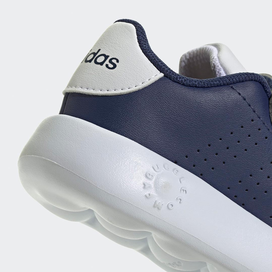 Ya sea para jugar en el parque o para visitar a la familia, estos tenis adidas Advantage para bebé garantizan que sus pequeños pies estén cómodos todo el día. Las tiras ajustables de cierre por contacto hacen que ponerlos y quitarlos sea muy fácil para los padres y los bebés. La mediasuela de espuma de EVA de una sola pieza y la suela amortiguan cada paso, mientras que el exterior sintético reciclado agrega durabilidad y estilo.