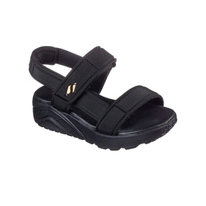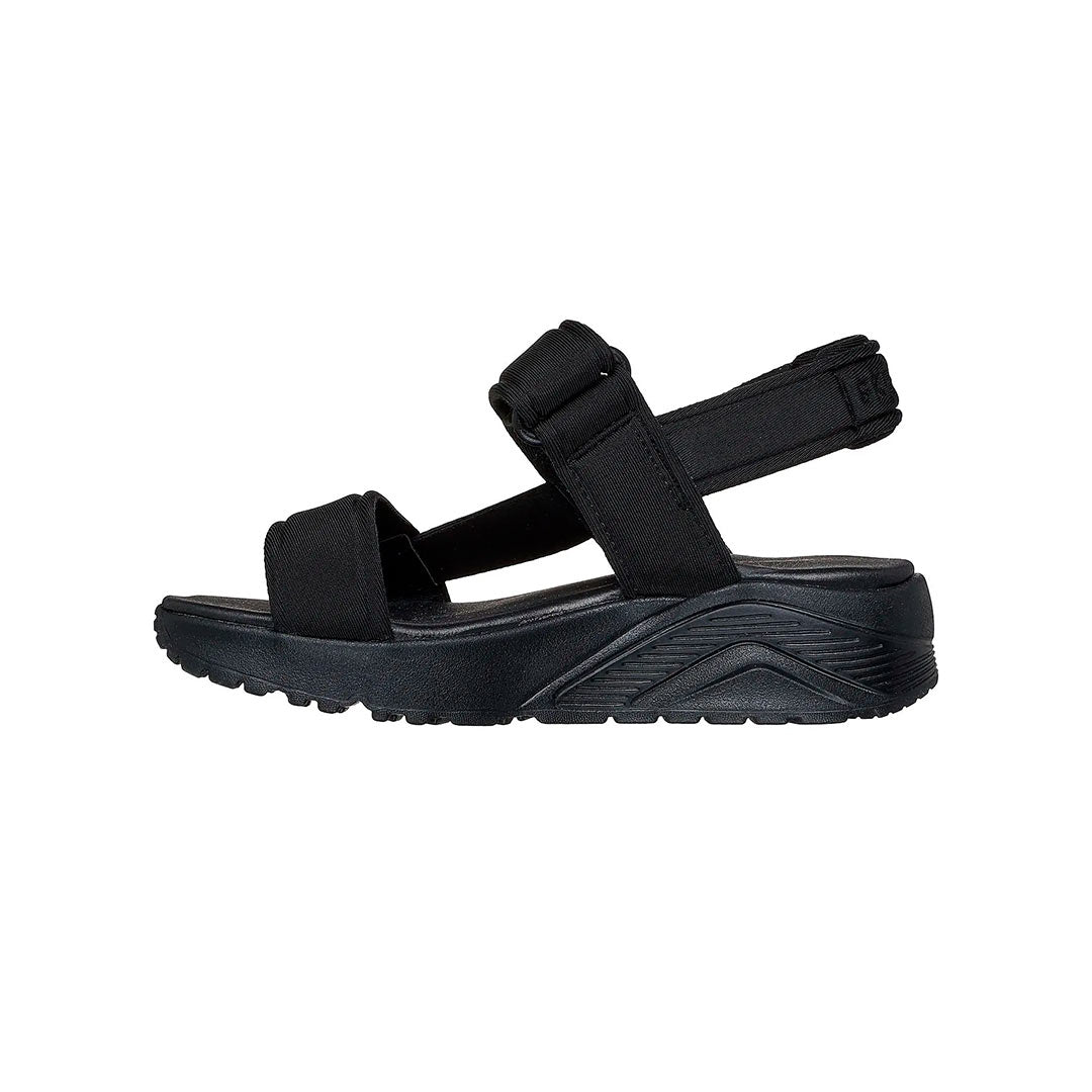 Luce el icónico estilo UNO, ideal para los cielos azules, con la sandalia Skechers Street™ UNO Lite - Sunny Stand. Esta sandalia deportiva monocromática con tira en T presenta una parte superior textil ligeramente acolchada, tira trasera, tira ajustable en el empeine y una plantilla acolchada y cómoda.