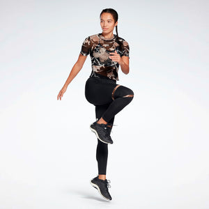 Cuando quieras; donde quieras. Estas mallas Reebok para mujer están diseñadas para acompañarte desde la clase de yoga hasta tu café favorito con comodidad y estilo. Están confeccionadas en un tejido suave y elástico que se mueve contigo. Las bandas con estampado floral les dan un toque refinado.DETALLES