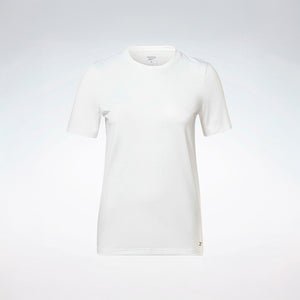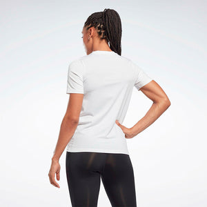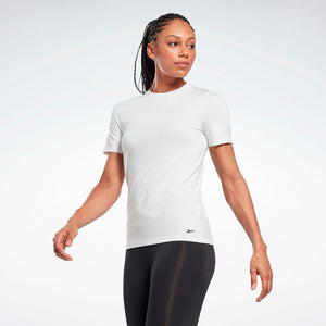 Lleva tu mejor esfuerzo a la pista o al gimnasio. Esta camiseta para mujer tiene un tejido elástico que te permite alcanzar, presionar y girar sin restricciones. La camiseta de entrenamiento Reebok tiene un ajuste entallado para una sensación estilizada.