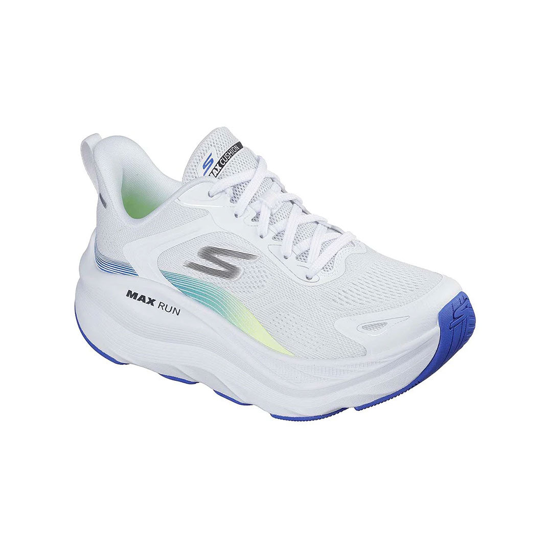 Maximiza tu comodidad en cada carrera con las Skechers Max Run - Pacewave. Estas zapatillas veganas para correr con cordones cuentan con una parte superior de malla transpirable con amortiguación ultraligera en la entresuela, plantilla Skechers Air-Cooled Goga Mat™ de alto rebote, nuestra entresuela Skechers Max Cushioning® y una suela exterior Goodyear® Performance antideslizante y duradera.