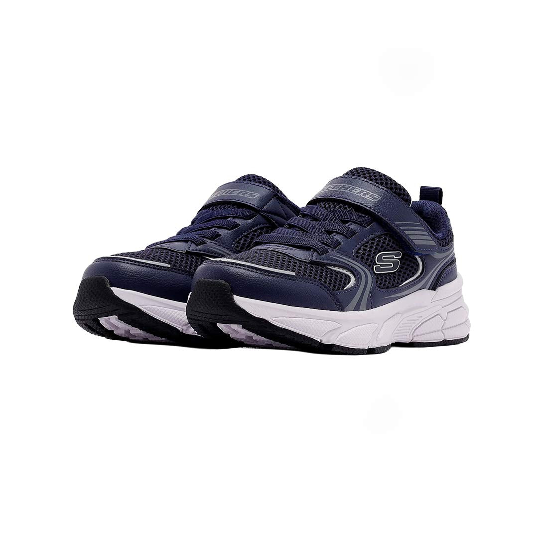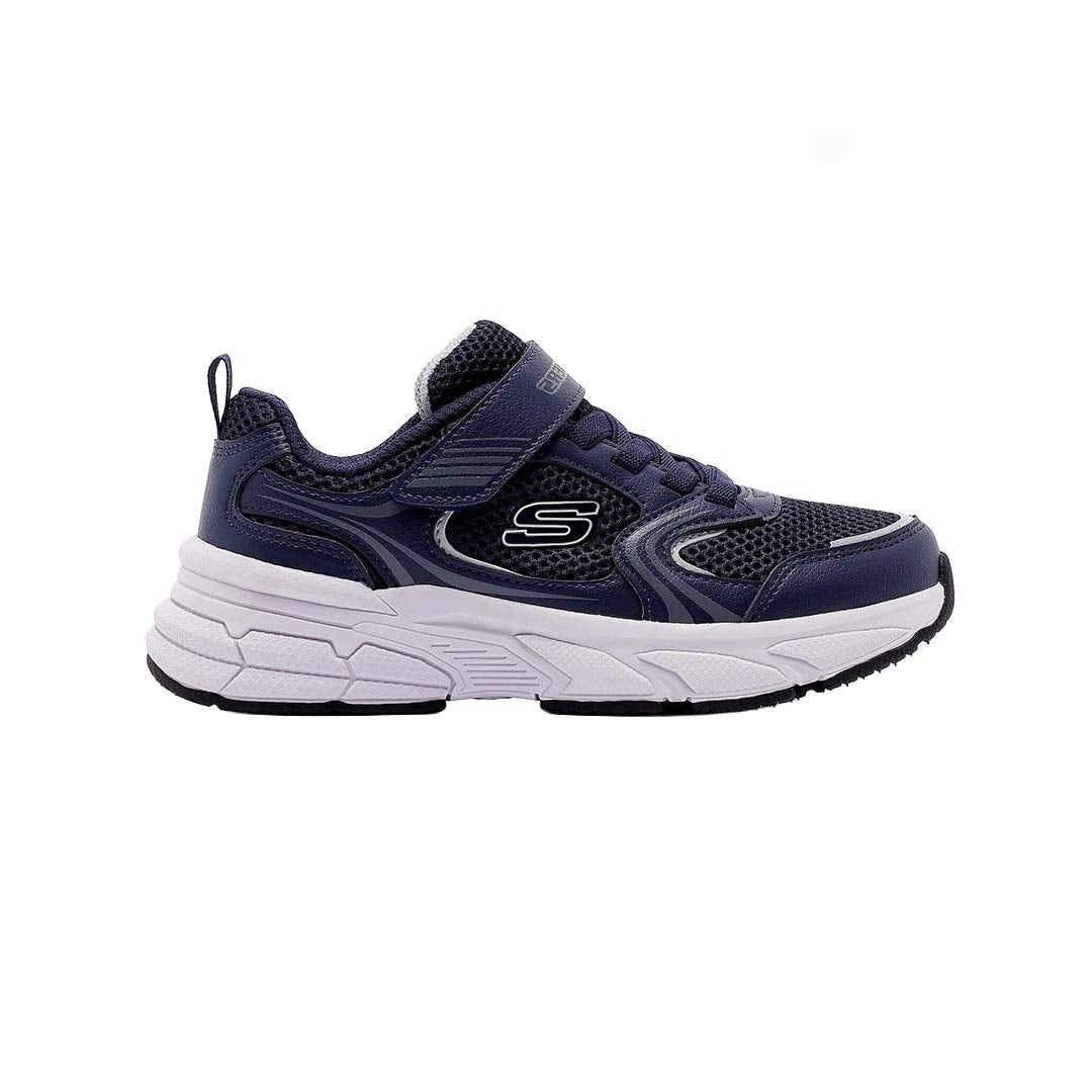 Las zapatillas deportivas Skechers Retro-Graph para niño ofrecen comodidad y estilo superiores en cada paso, listas para la aventura. Su suave plantilla acolchada y su suela flexible brindan comodidad durante todo el día y un excelente agarre, ofreciendo a los niños una sensación de amortiguación en cada paso.