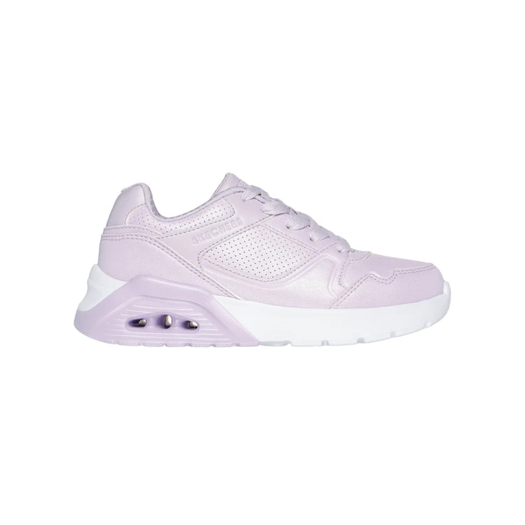 Mejora tu estilo con Skechers Street™ Uno Lite 2.0. Esta moderna zapatilla con cordones cuenta con una parte superior de duraleather brillante con detalle perforado en el lateral, una media suela en bloques de color con aberturas y una cómoda plantilla Skechers Air-Cooled Memory Foam™.