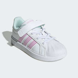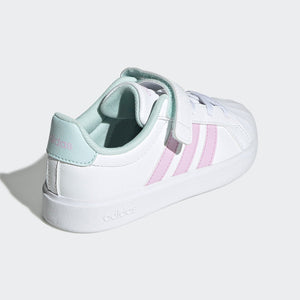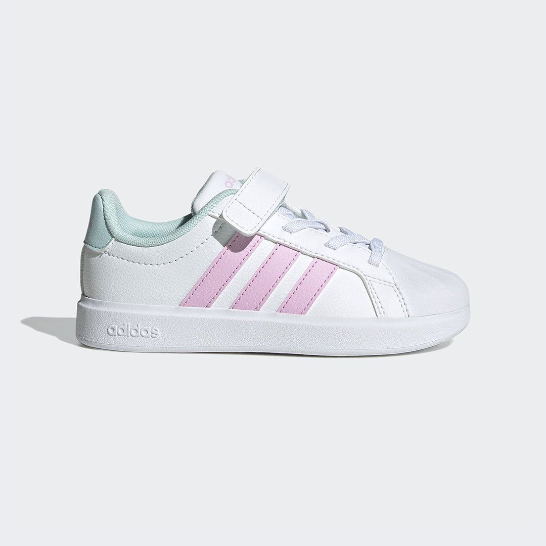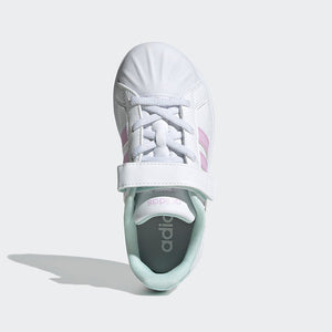 Ya sea que corran por el parque o descansen en casa, estos tenis para niños de adidas mantienen a los niños cómodos y con estilo. La suela de caucho se agarra al suelo mientras se mueve, y el exterior de material sintético con punta clásica de caucho con relieve ofrece mayor durabilidad. Las tiras ajustables de cierre por contacto hacen que sean fáciles de poner y quitar para que tu hijo esté listo para la aventura en cualquier momento.