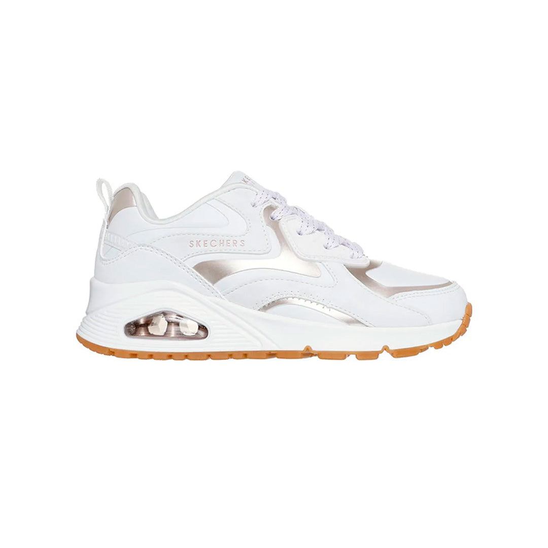 Mejora tu estilo con las Skechers Street™ UNO Gen1 - Color Surge. Estas zapatillas de moda con cordones cuentan con una parte superior de durabuck sintético y duraleather con bloques de color, una cómoda plantilla Skechers Air-Cooled Memory Foam® y una entresuela con airbag Skech-Air® visible.