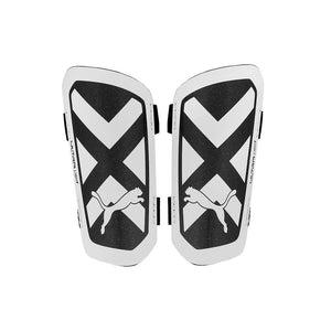 Triunfa en la cancha. Deja todo en el terreno de juego al usar las Espinilleras Puma Ultra Light, con este accesorio estarás protegido para lo que se venga. Son sumamente cómodas y ligeras, de esta manera tu mente y cuerpo estarán enfocados solamente en conseguir la victoria. Fueron hechas con un acolchado de felpa y correas ajustables para darte una sensación de seguridad en cada movimiento. La carcasa rígida de PP es de alta resistencia mientras que el respaldo de CMEVA perforado absorbe los impactos. La construcción ajustable es de dos correas.