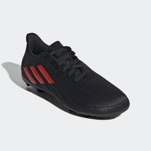 Diseñados para dominar las canchas de terreno firme, terreno duro y pasto sintético. El talón de estos guayos adidas Deportivo para jóvenes tiene un diseño especial que sujeta el pie el todo momento. La lengüeta tiene perforaciones que mantienen tus pies más frescos. Las puntadas en el antepié mantienen el balón pegado a tus pies y el sistema de amarre asimétrico permite golpes más precisos.