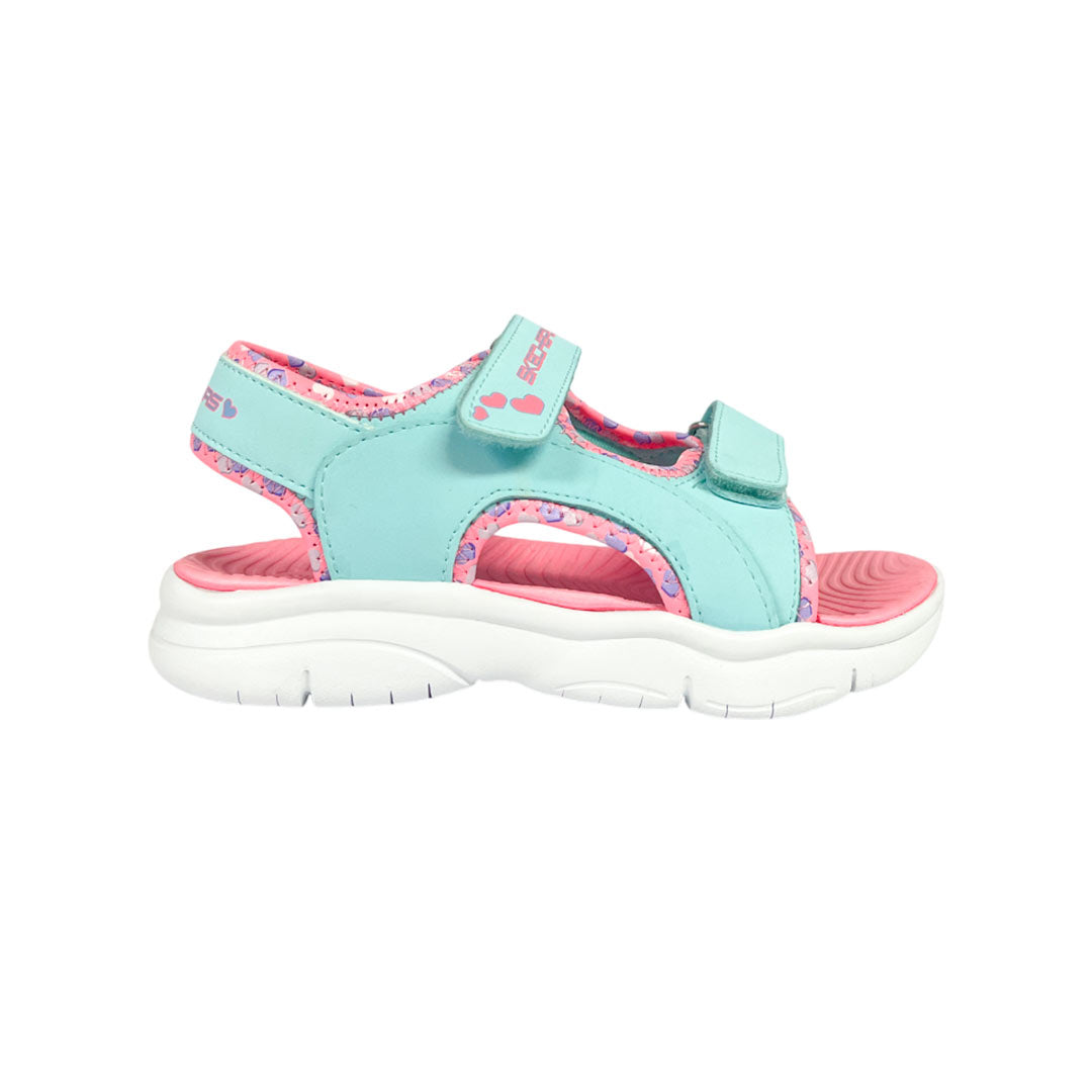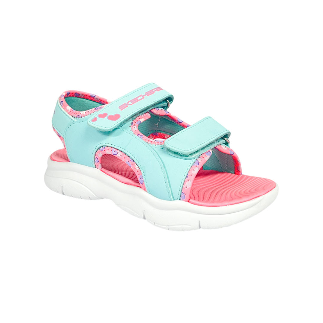 Disfruta del sol y del surf con las Skechers Flex Splash - Heart Galore. Esta sandalia deportiva ligera cuenta con una parte superior sintética con cierres de doble correa ajustables, correa de tobillo acolchada y una plantilla acolchada y cómoda.