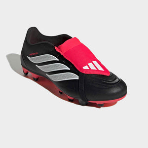 Los guayos de fútbol Predator Club con lengüeta plegable para terreno firme/multiterreno están diseñados para aquellos que se atreven a dominar la cancha. Con un diseño innovador, estos chimpunes te ayudan a liberar tu potencial. La icónica lengüeta plegable crea una superficie de golpeo suave, para que cada disparo sea preciso y potente. El exterior de material sintético proporciona comodidad y textura para un mejor agarre, lo que te permite controlar la pelota con facilidad.