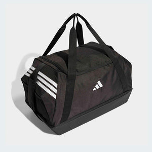 El bolso de viaje mediano Tiro con compartimento inferior está diseñado para acompañarte en tu vida futbolística. Cuenta con un gran compartimento principal con cierre de cremallera que te permite guardar y acceder fácilmente a tus objetos esenciales antes de los entrenamientos o los partidos. Incluye una sección inferior independiente para organizar adecuadamente tus botas o equipación húmeda. Todo ordenado y listo para usar. Se ha confeccionado en un tejido técnico muy resistente que se adapta a las exigencias de los entrenamientos y viajes frecuentes.