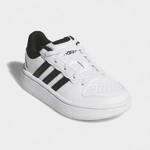 Descubre el estilo inspirado en el básquet con los TENIS HOOPS CLASSIC. Estos tenis son un guiño al diseño tradicional del básquet, con una suela clásica y un exterior con paneles sencillos. Una fantástica elección para los niños, estos tenis vienen con un sistema de amarre de cordones elásticos, que los hace fáciles de poner y quitar, para que tus pequeños estén listos para jugar en un instante. La suela tipo cupsole de caucho completa con detalles del logo lineal ofrece durabilidad y estilo, mientras que las emblemáticas 3 Rayas y el logo lineal de adidas en el talón añaden un toque de herencia.