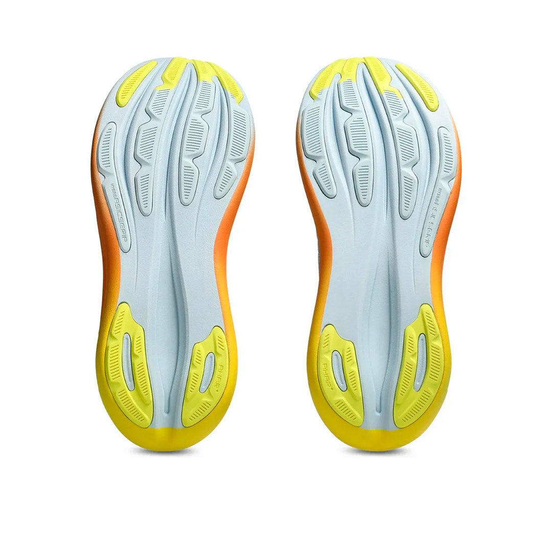 La GEL-NIMBUS 28 SUNNY SIZZLE es uno de los modelos más cómodos de la gama de zapatillas de running de ASICS. Esta zapatilla ofrece una excelente amortiguación para correr distancias más largas. La mediasuela cuenta con una combinación de amortiguación FF BLAST PLUS y tecnología PureGEL . Estos componentes crean una amortiguación ligera y suave que te dará la sensación de aterrizar en una nube.