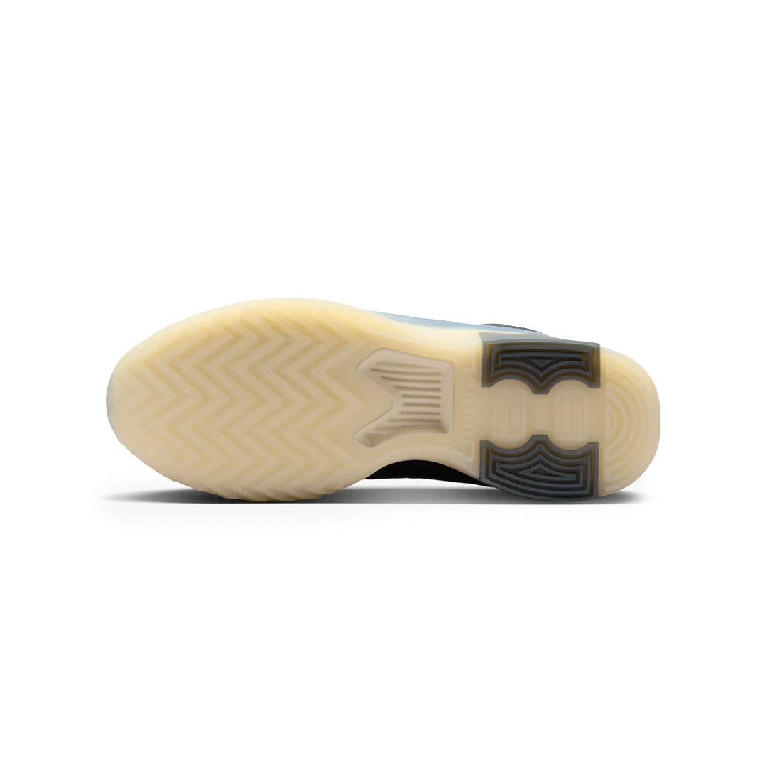- La suela está confeccionada con un compuesto de goma que ofrece un soporte óptimo para los movimientos laterales, tanto en cancha cubierta como al aire libre. Ocupa desde la punta hasta alrededor del talón para mejorar la durabilidad.