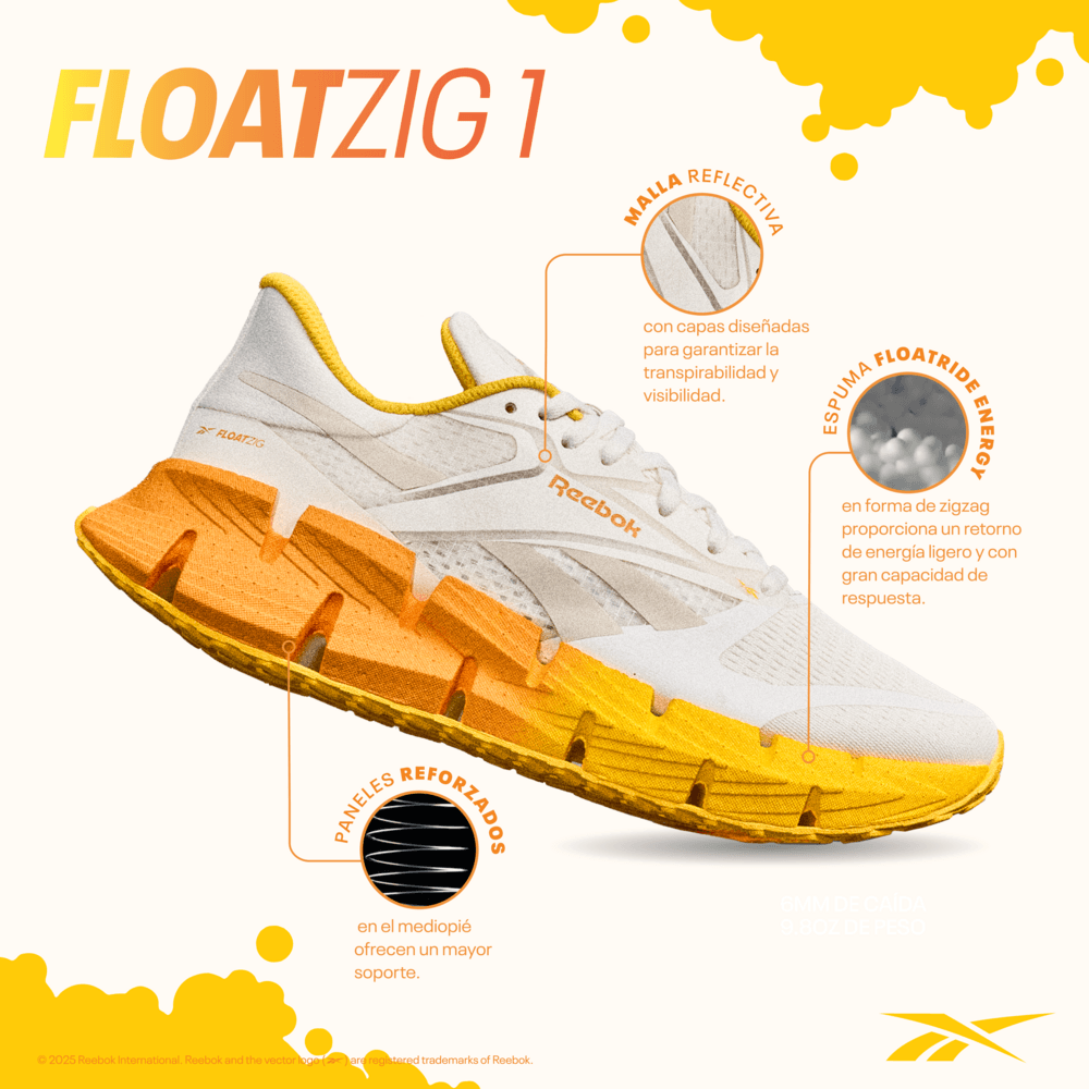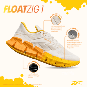 ¿Por qué elegir entre suave y elástico? ¿Rápido y fluido? Conozca la nueva forma de correr, las FloatZig 1 de alto retorno de energía. Diseñadas para inspirar a todos a ponerse los cordones y salir al aire libre, estas zapatillas para correr Reebok para hombre están construidas con tecnología de espuma liviana de primera calidad en una geometría que mejora la amortiguación, el retorno de energía y una transición suave para brindar una experiencia única bajo los pies.