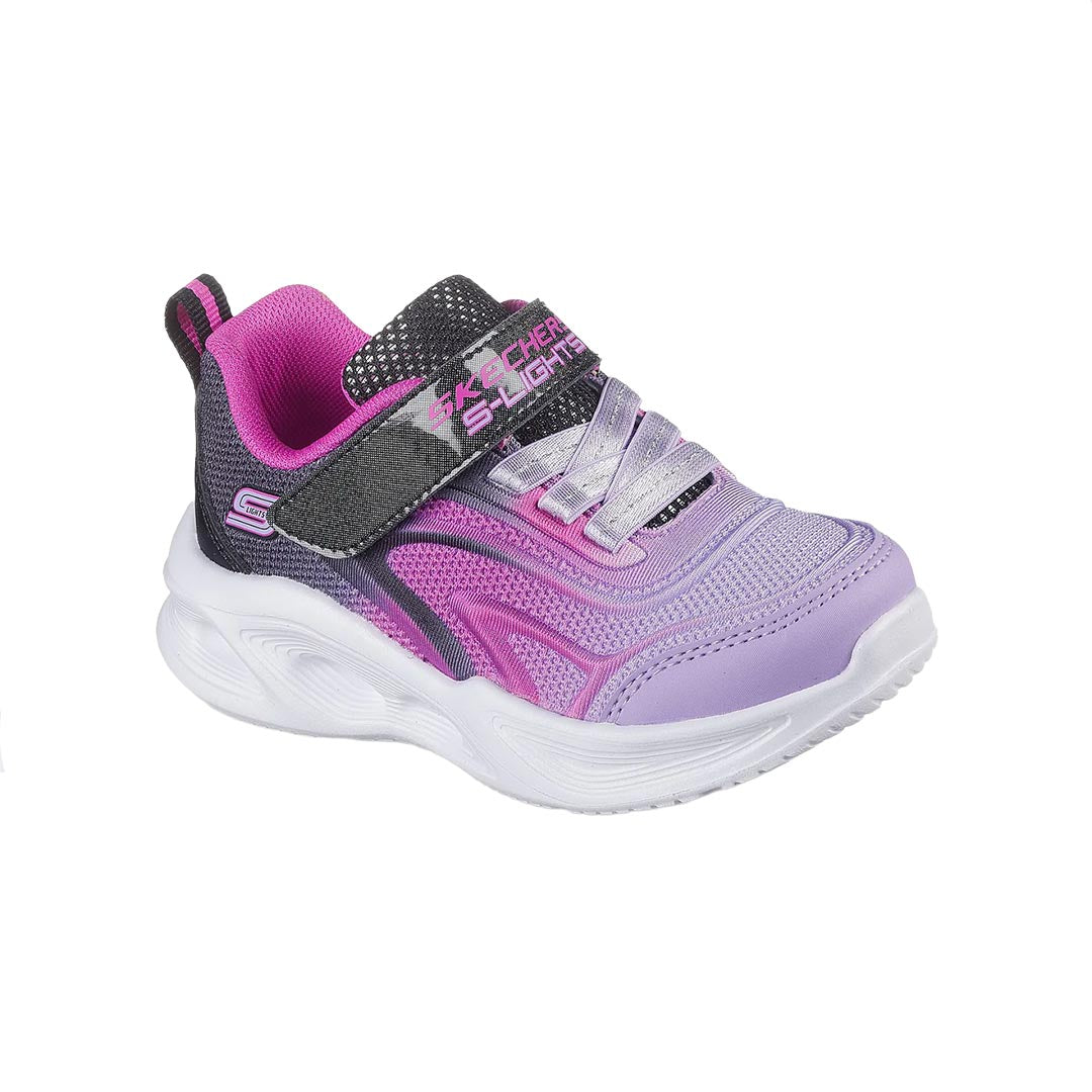 Ilumina el patio de recreo con alegría y color con los zapatos Skechers S-Lights®: Sola Glow - Color Breeze. Este modelo de Skechers cuenta con un cierre personalizado, una parte superior de malla y sintético con detalles en relieve, una correa ajustable en el empeine, cordones elásticos fijos y una entresuela con amortiguación y luces.