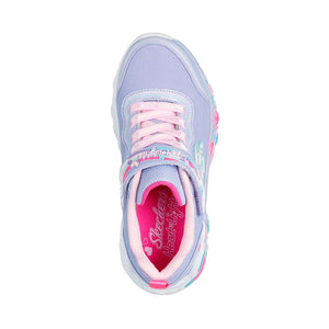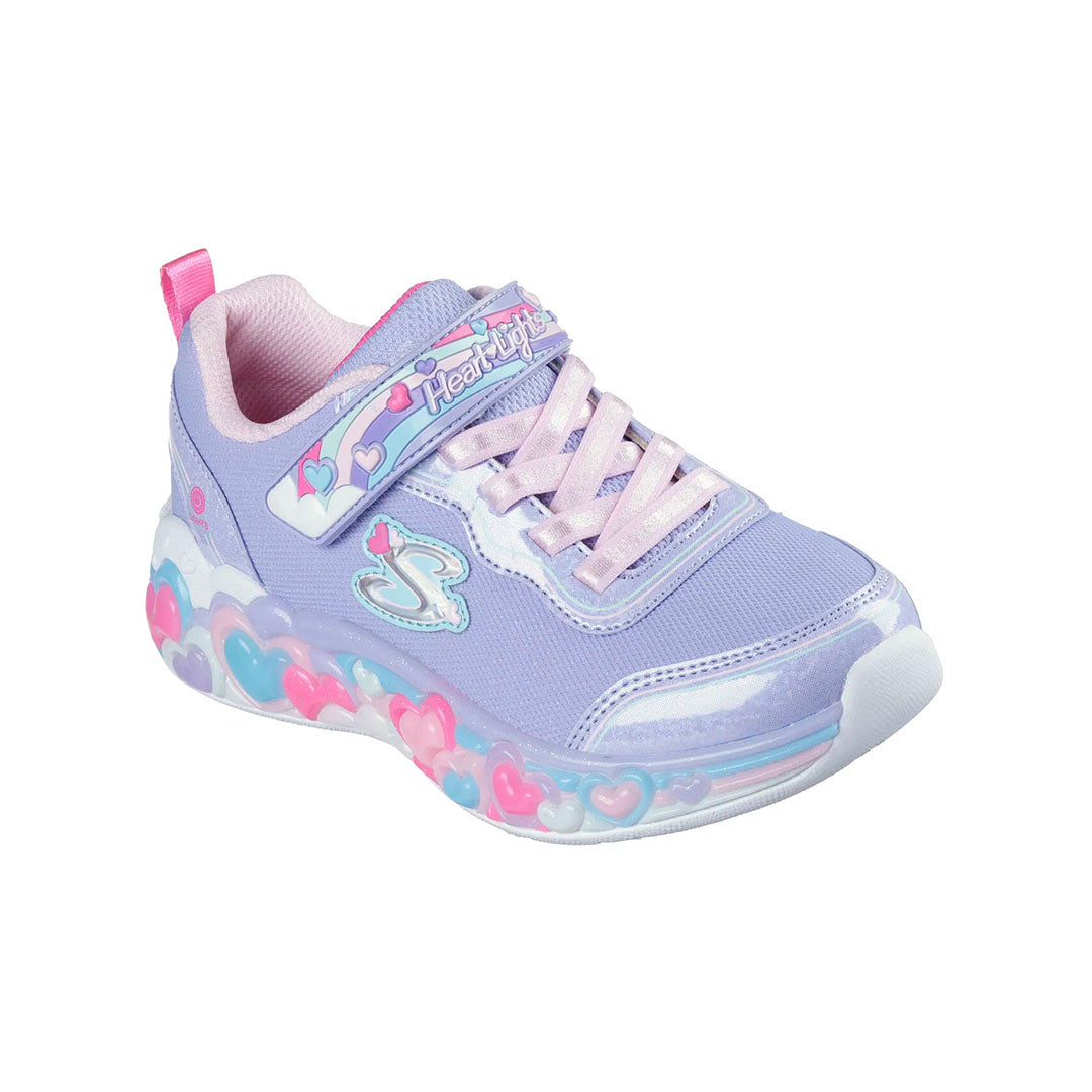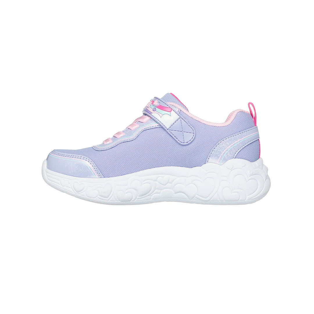 El estilo deportivo se ilumina y se vuelve adorable con Skechers S-Lights®: Eternal Heart Lights - Ton Of Love. Este diseño iluminado presenta una parte superior de malla brillante y brillo sintético, un frente con cordones elásticos y un cierre adaptable de Skechers.